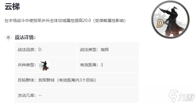冲车是提升攻城属性的核心战法,属于被动技能,可增强部队对敌方城池的破坏力。学习该战法需优先掌握其基础机制:战法效果为固定提升自身10点攻城属性,随等级提升加成会进一步提高。由于攻城属性直接影响拆迁效率,冲车成为攻城战中不可或缺的技能,尤其适合力量型或技巧型武将携带。